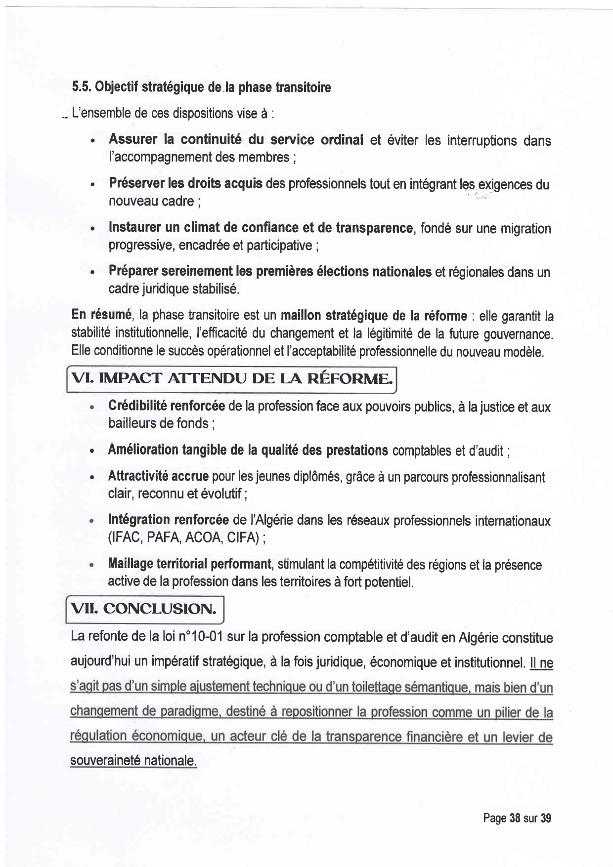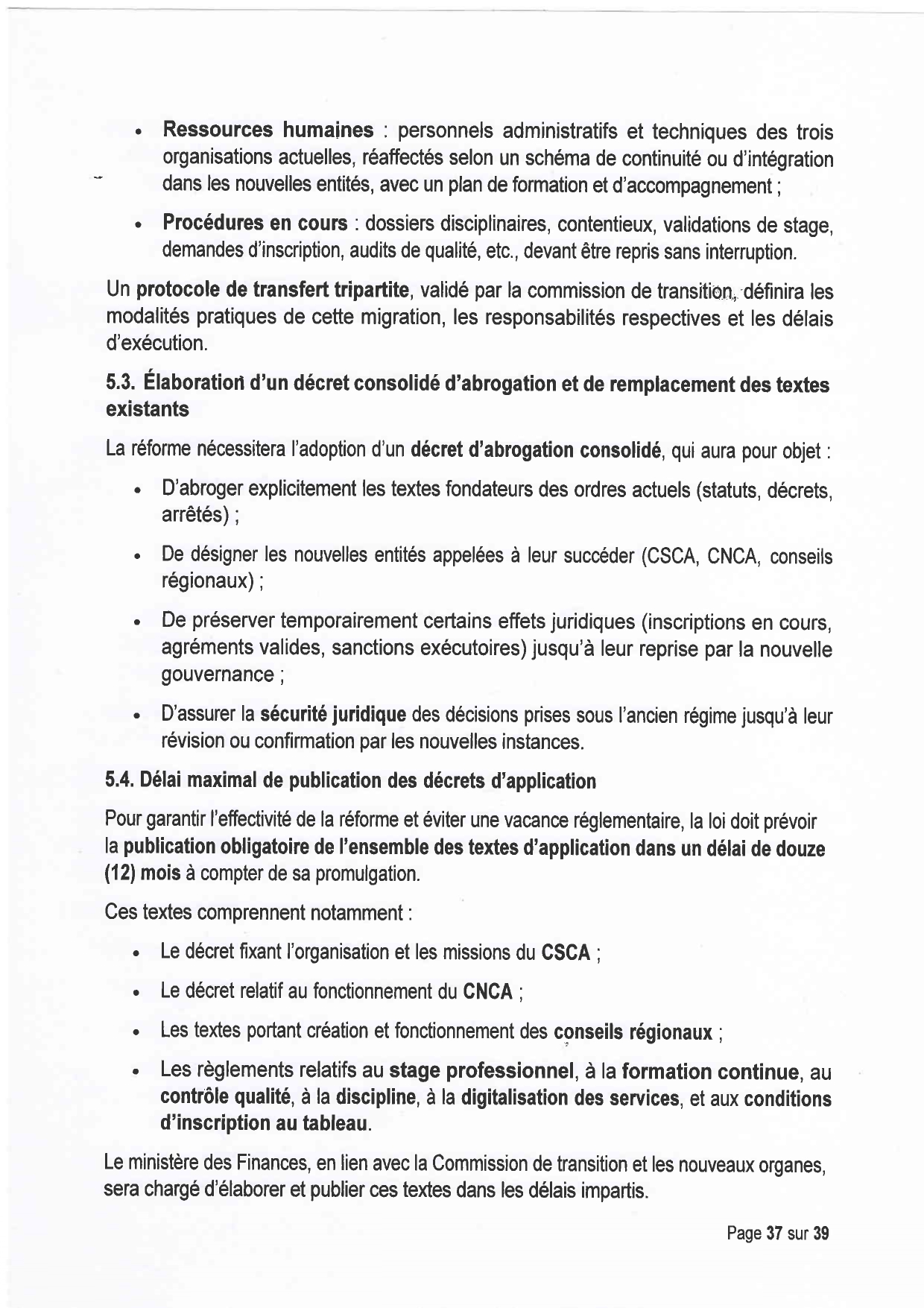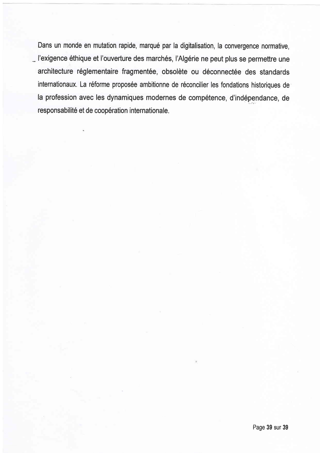 RELATIVE AUX GRANDS AXES DE LA REFONTE DE LA LOI SUR LA PROFESSION COMPTABLE ET D'AUDIT