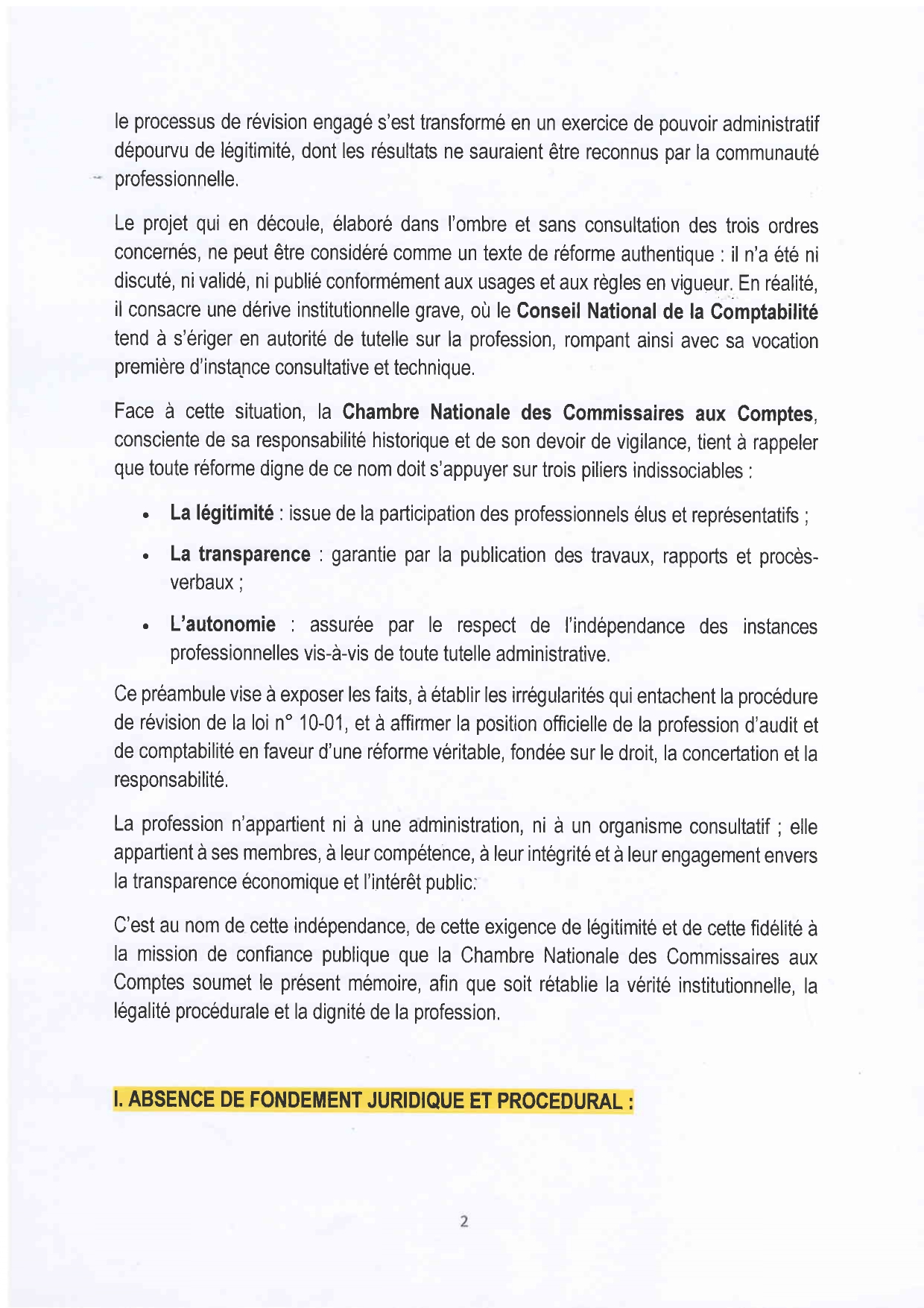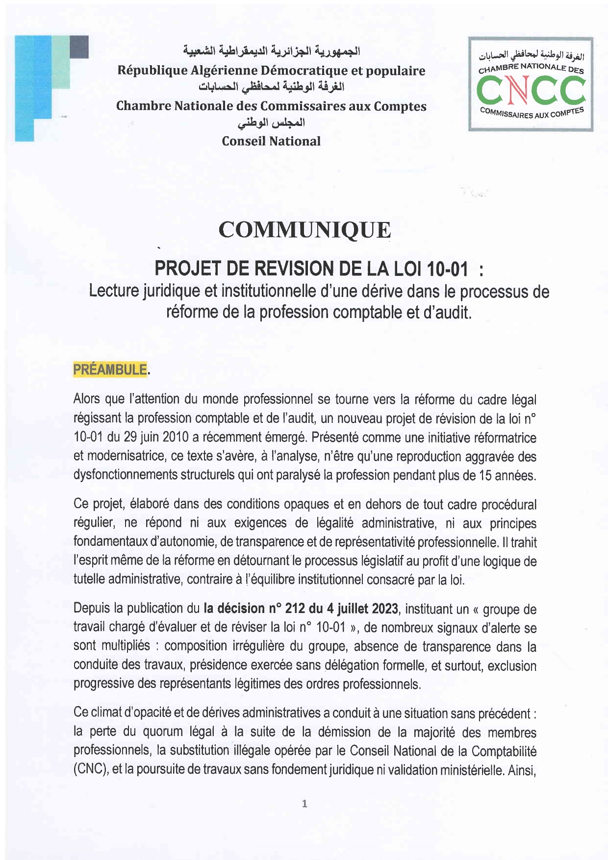 PROJET DE REVISION DE LA LOI 10-01 : Lecture juridique et institutionnelle d'une dérive dans le processus de réforme de la profession comptable et d'audit.