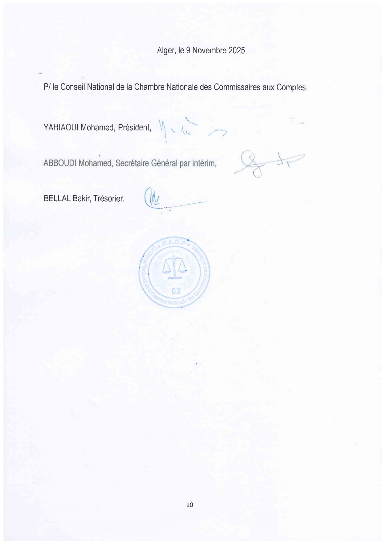 الخطاب الرسمي – الجمعية العامة العادية لمحافظي الحسابات. الجزائر، 30 أكتوبر 2025