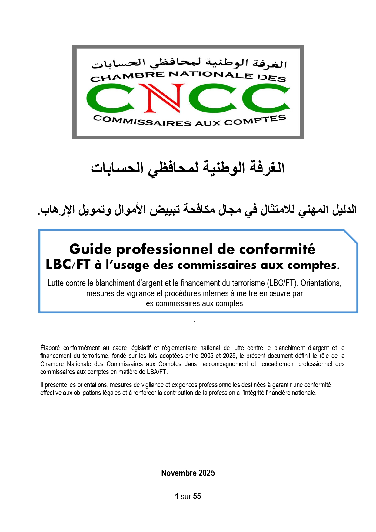 Guide professionnel de conformité LBC/FT à l’usage des commissaires aux comptes. Lutte contre le blanchiment d’argent et le financement du terrorisme (LBC/FT). Orientations, mesures de vigilance et procédures internes à mettre en œuvre par les commissaires aux comptes