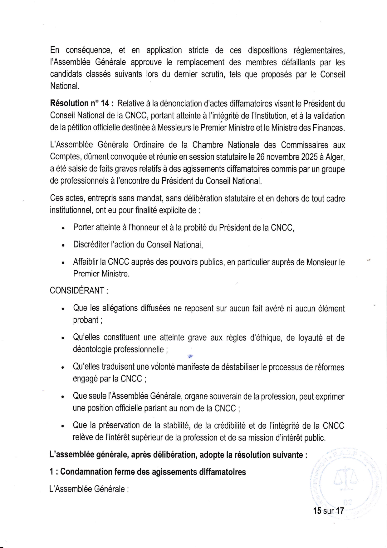 Procès-verbal du bureau de l'assemblée générale CNCC du 26 Novembre 2025