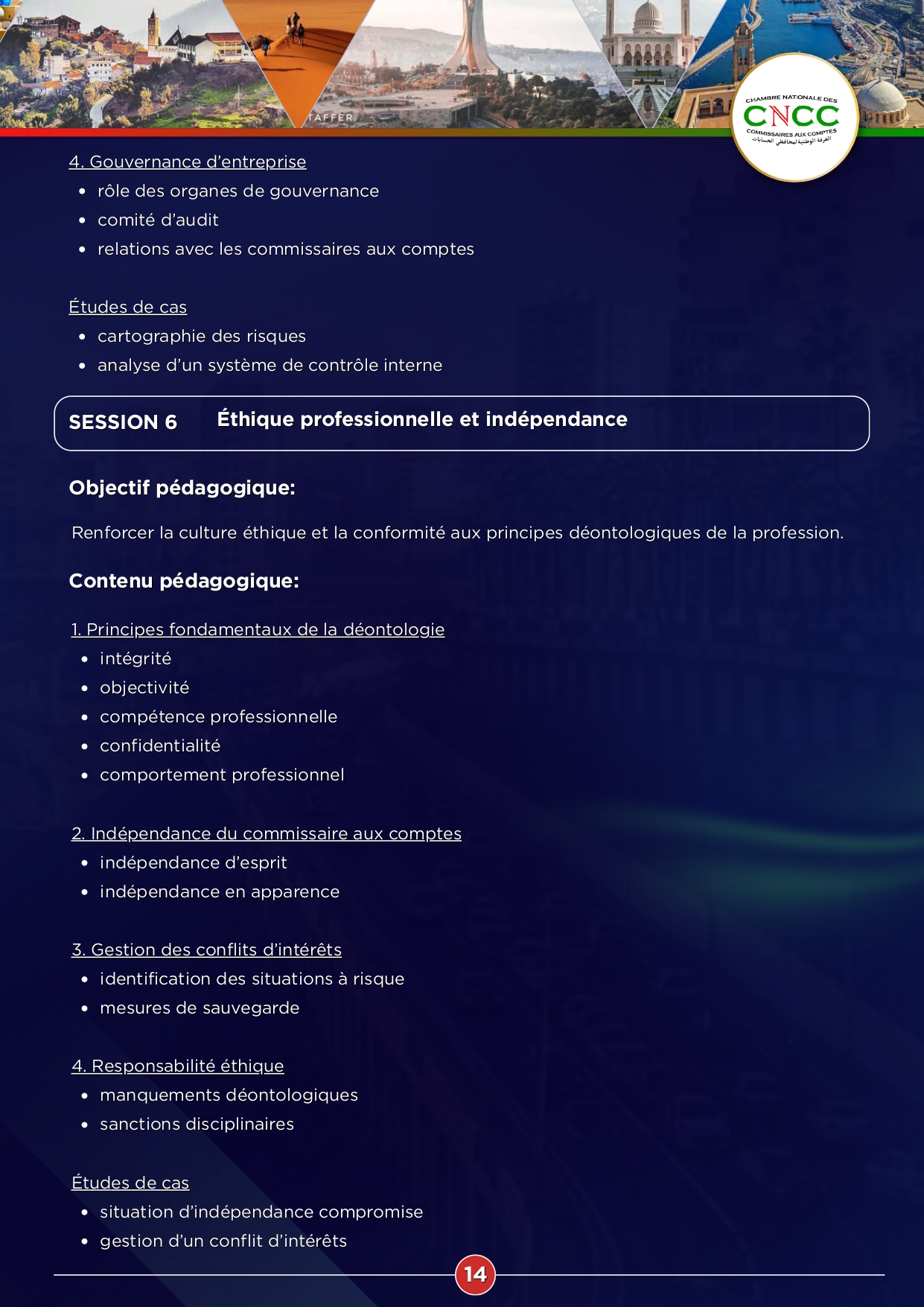 PROGRAMME NATIONAL DE FORMATION CONTINUE CNCC DURABILITÉ FORMATION EN AUDIT ET CERTIFICATION DES INFORMATIONS DE DURABILITE