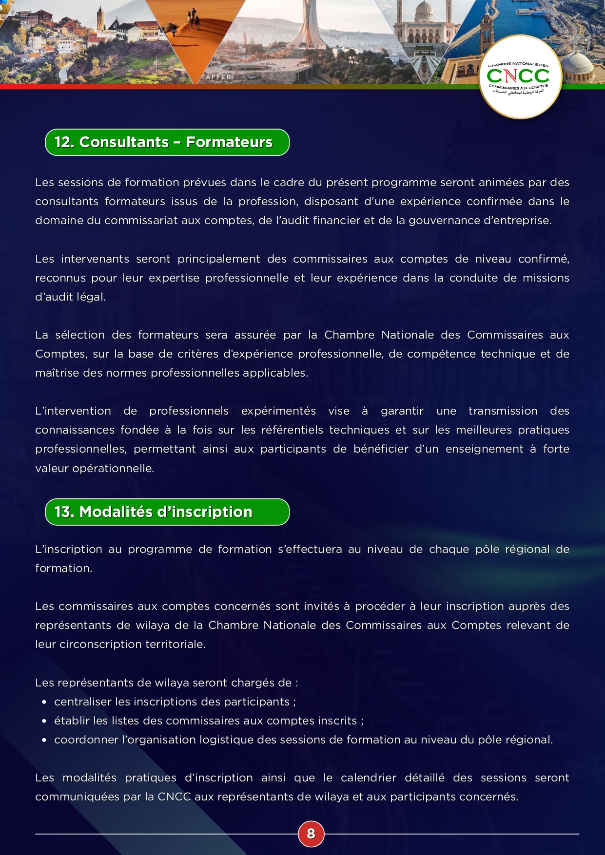 AVIS D’APPEL A CONSULTANTS-FORMATEURS Pour l’encadrement du Programme National de Formation Continue à l’attention des Commissaires aux Comptes nouvellement agréés.