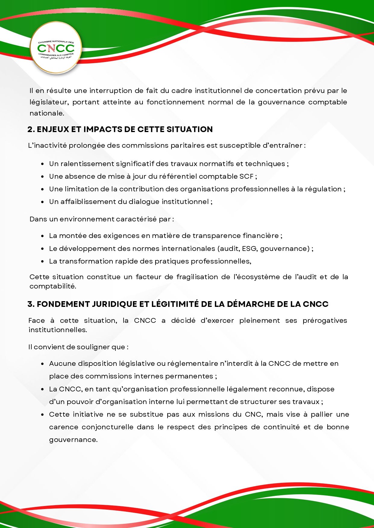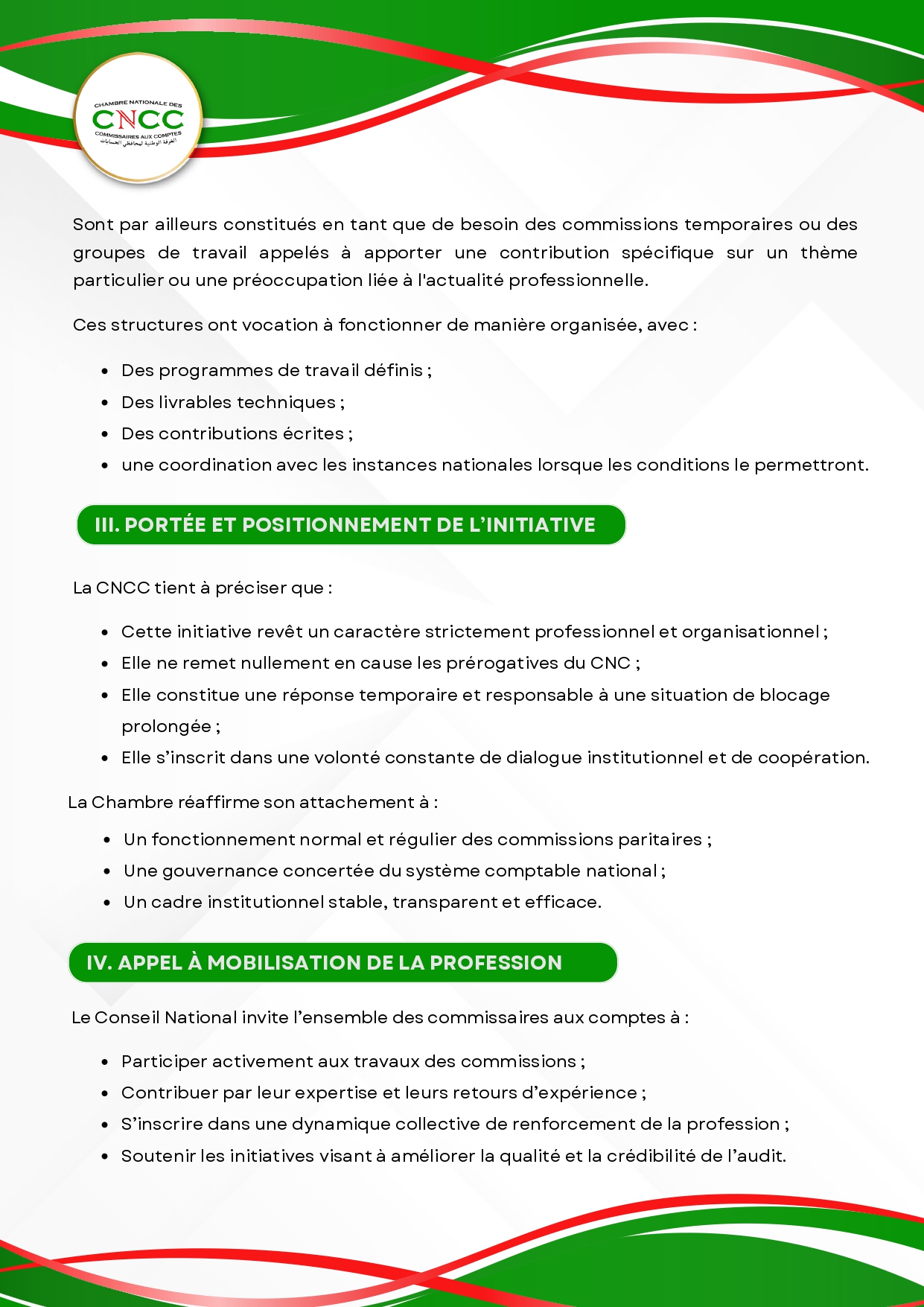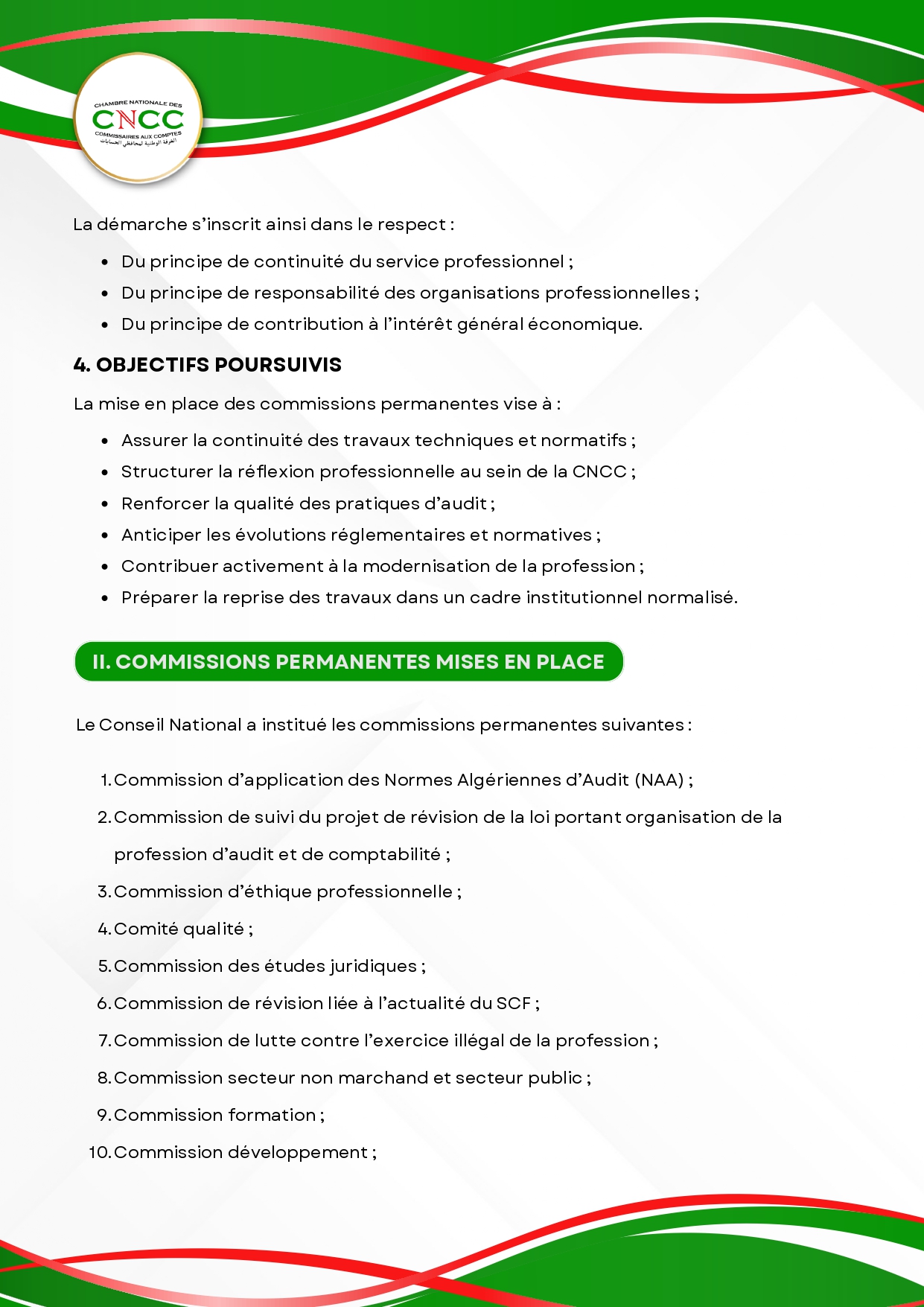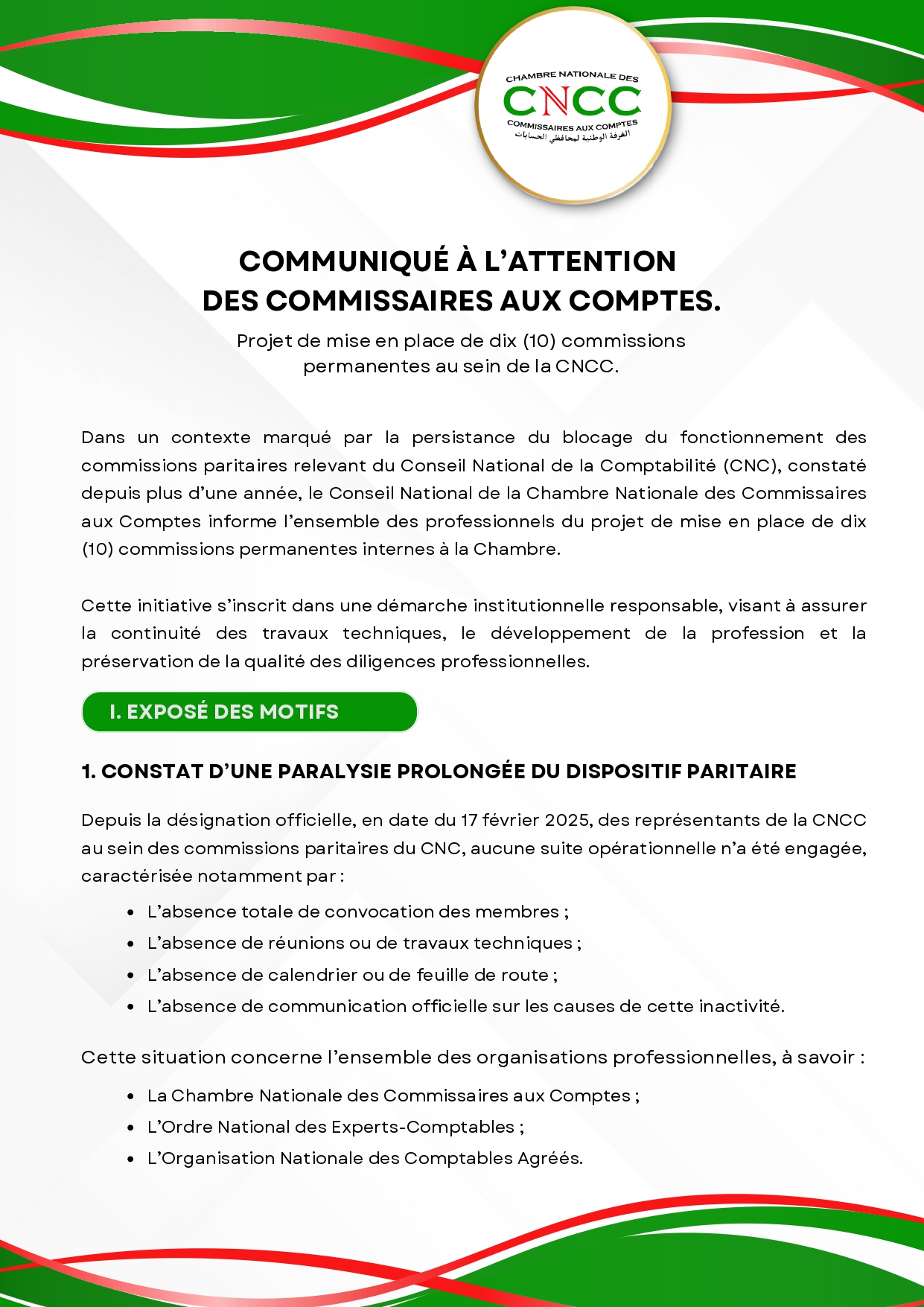 Projet de mise en place de dix (10) commissions permanentes au sein de la CNCC.