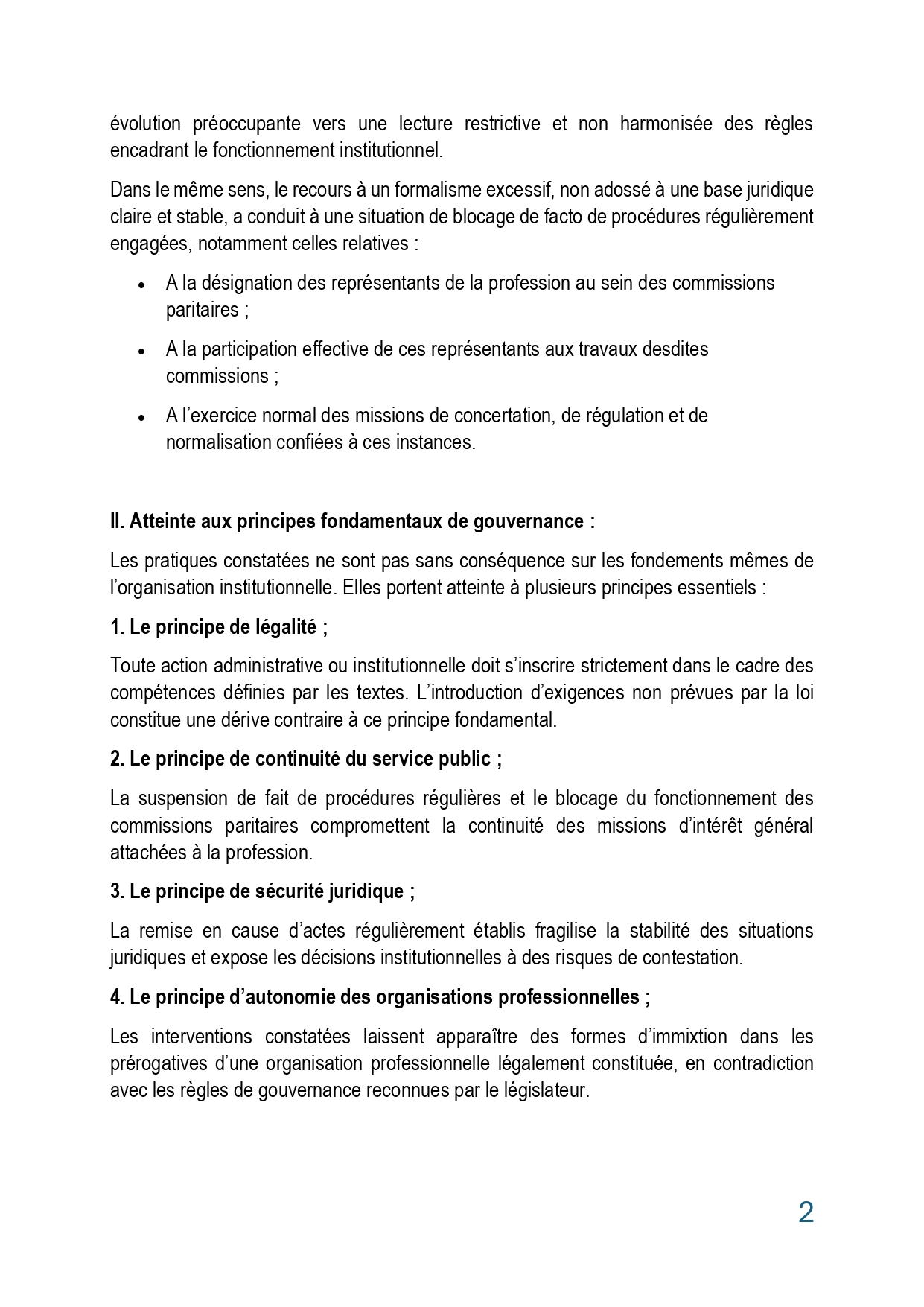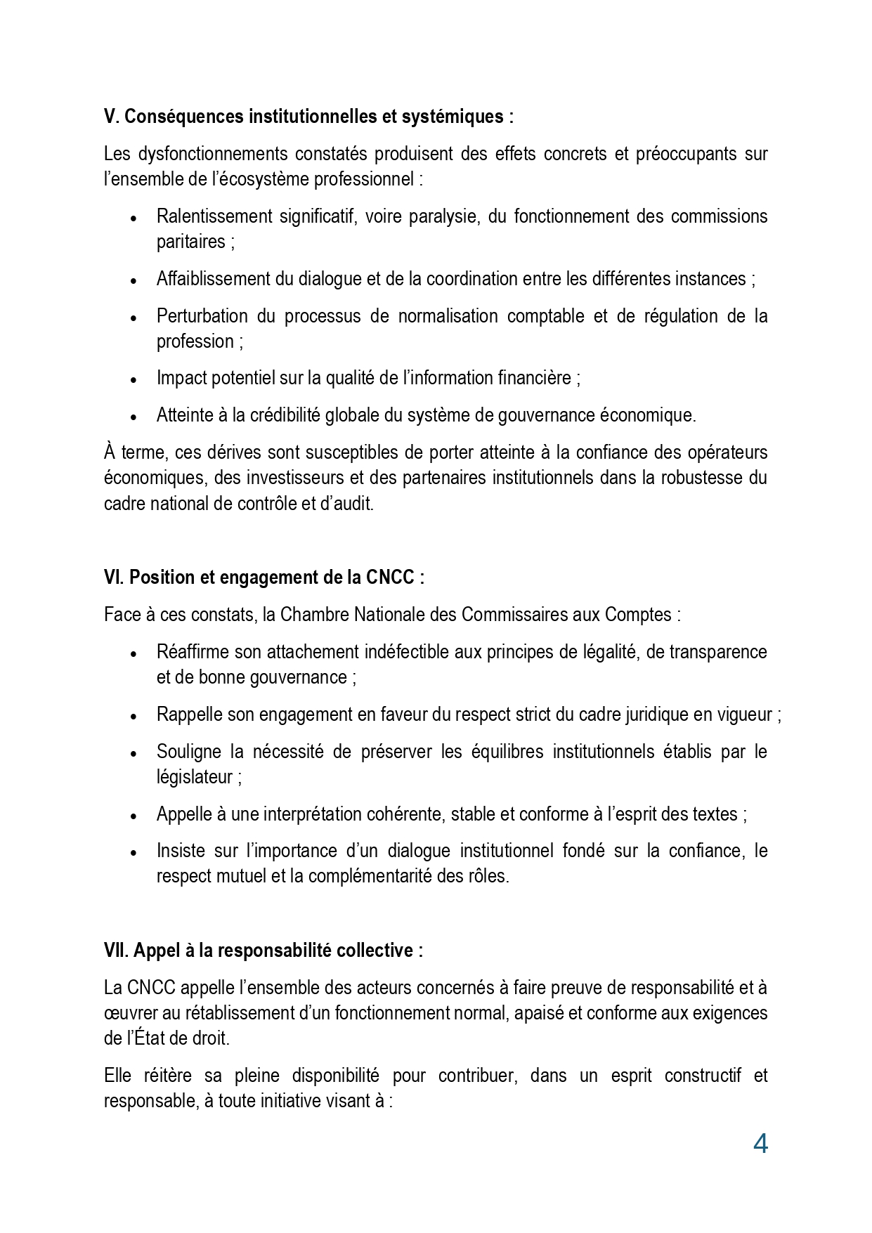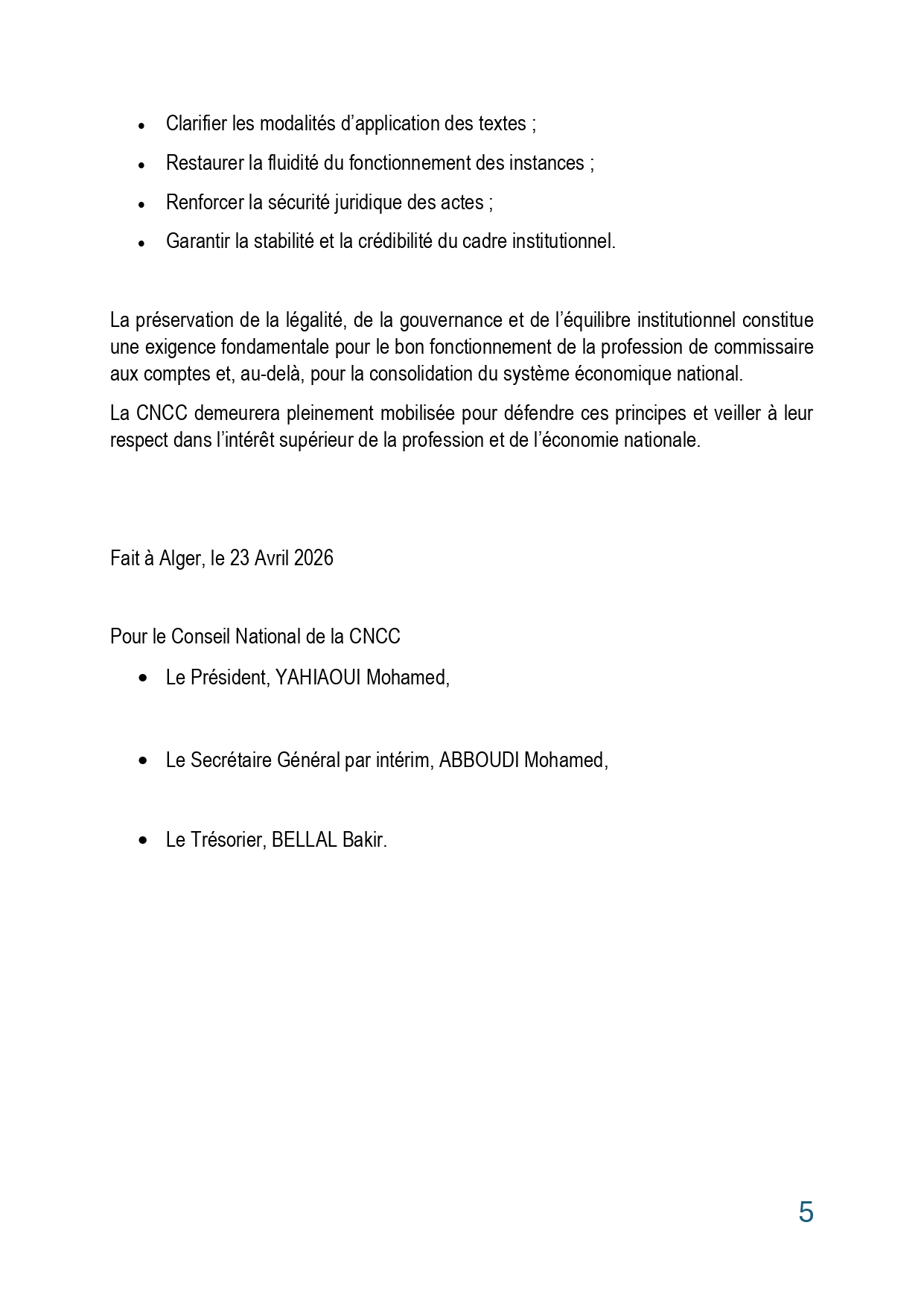 COMMUNIQUÉ INSTITUTIONNEL À L’ATTENTION DES COMMISSAIRES AUX COMPTES Pour la préservation de la légalité, de la gouvernance et de l’équilibre institutionnel.