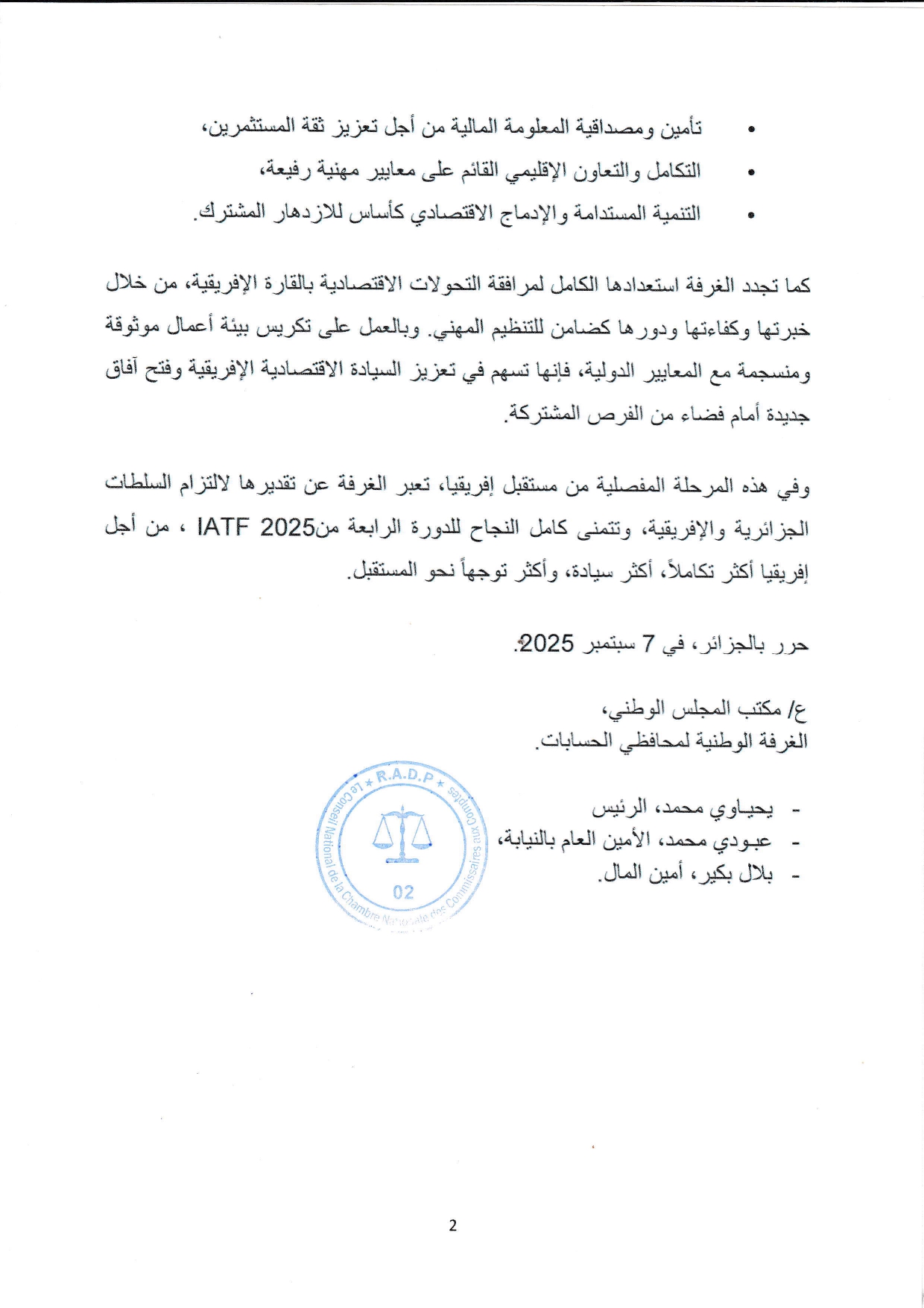 الخطاب الرسمي – الجمعية العامة العادية لمحافظي الحسابات. الجزائر، 30 أكتوبر 2025