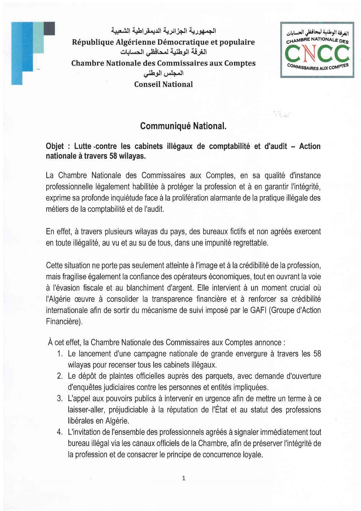 la lutte contre les cabinets illégaux de comptabilité et d'audit dans le cadre de l'action nationale à travers les 58 wilayas