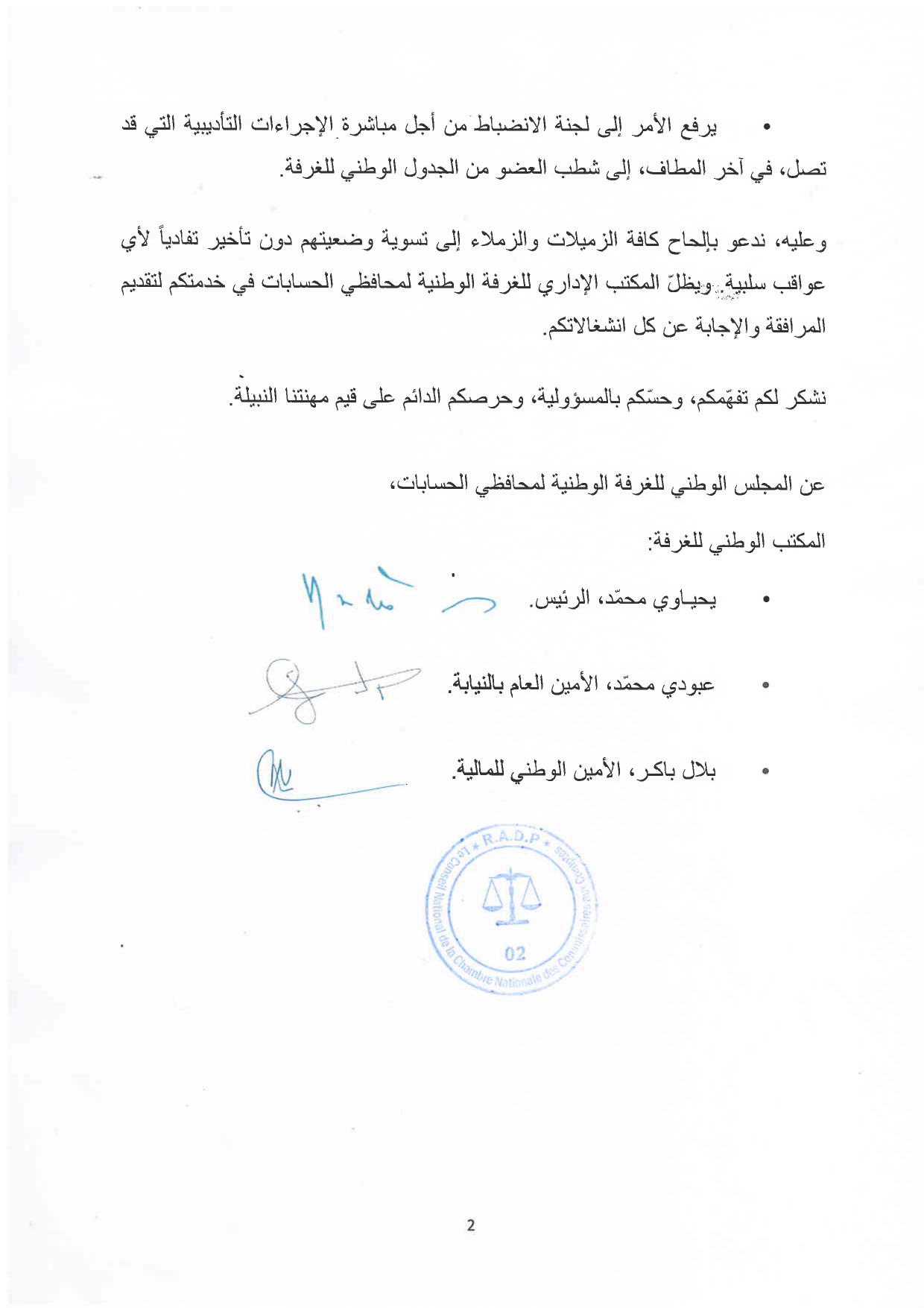 مشروع قانون .. المتعلق بتنظيم مهنة المحاسبين والمدققين.