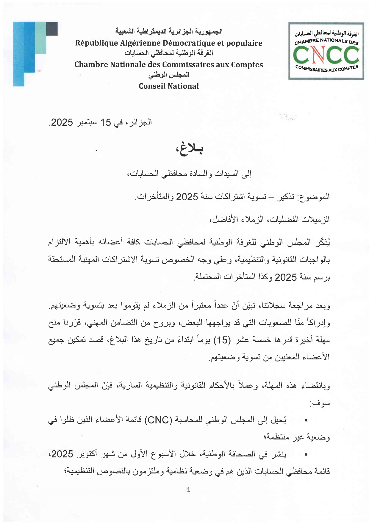 تدكير - تسوية اشتراكات سنة 2025 و المتاخرات