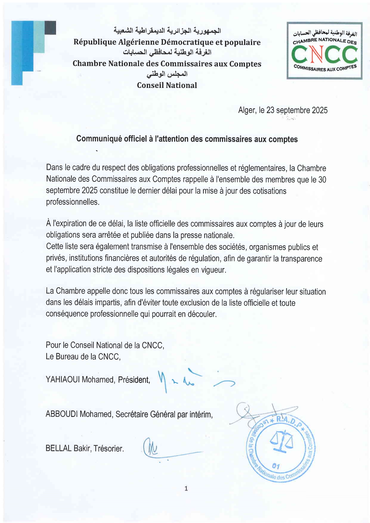 بيان رسمي موجه الى السادة محافظي الحسابات