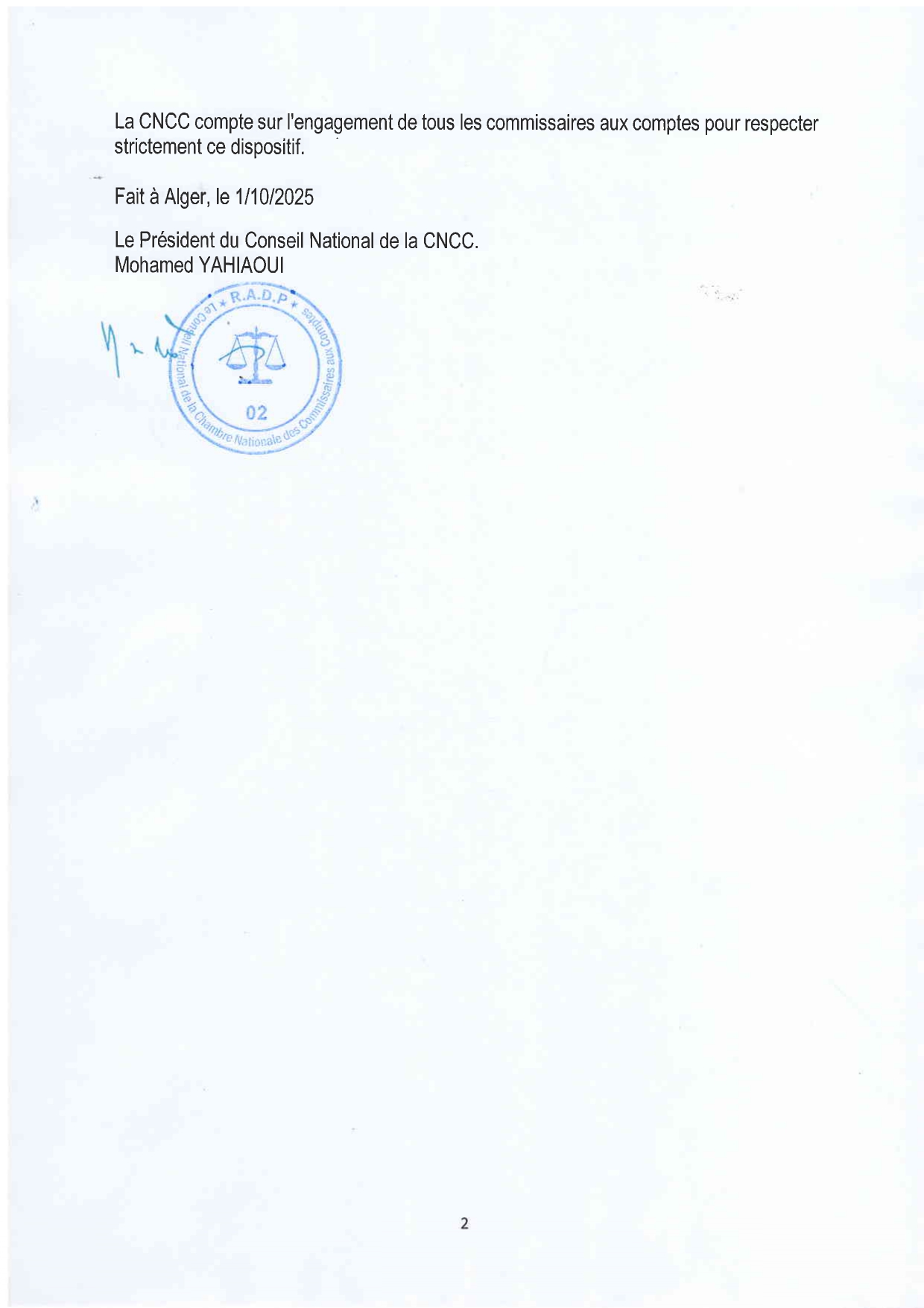 الخطاب الرسمي – الجمعية العامة العادية لمحافظي الحسابات. الجزائر، 30 أكتوبر 2025
