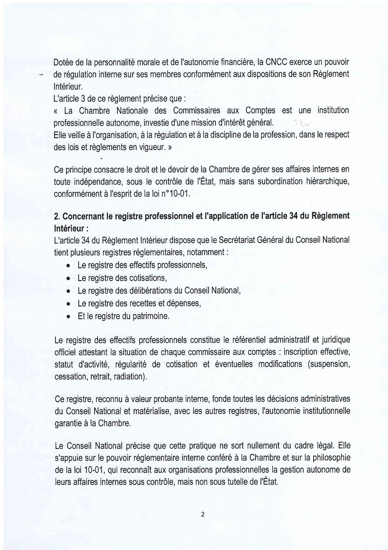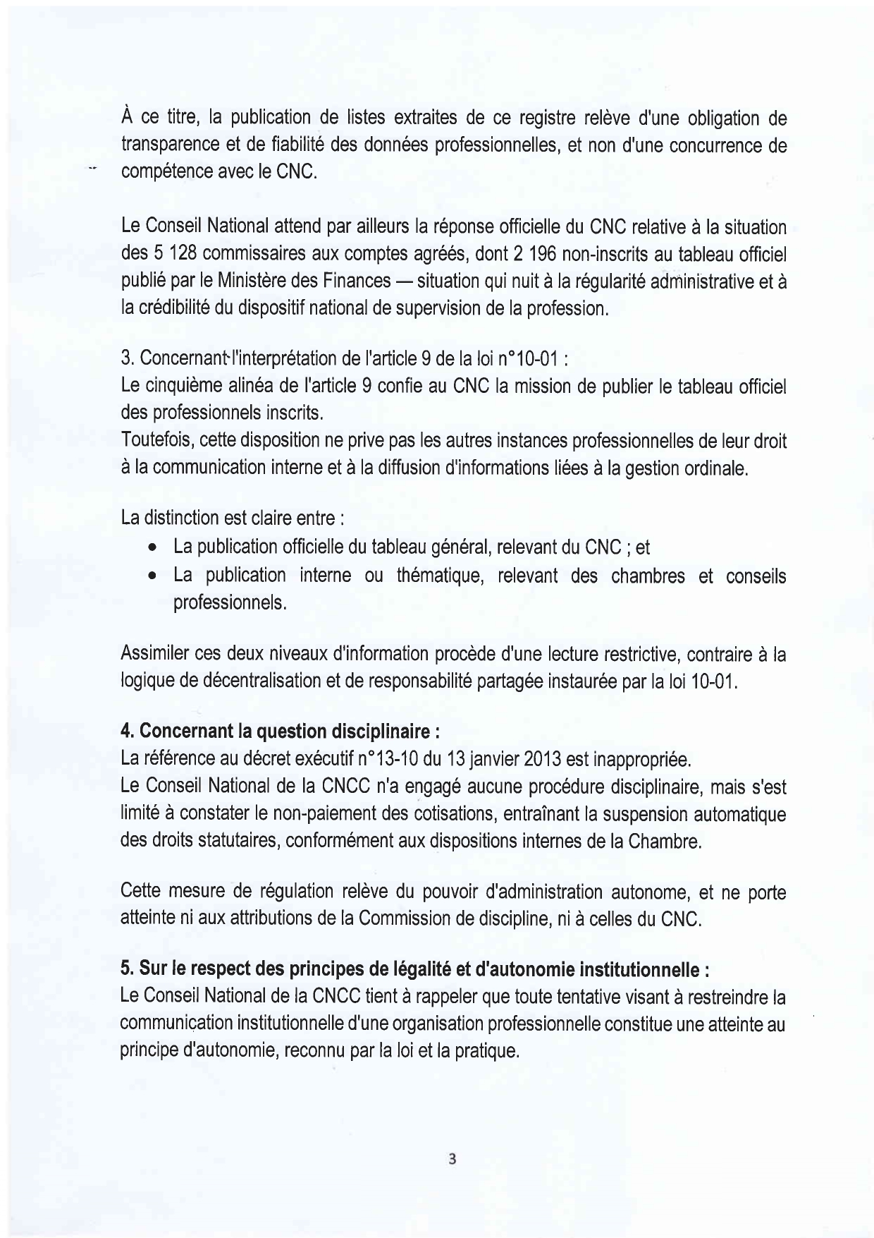 COMMUNNUÉ DESNNÉ AUX COMMISSAIRES AUX COMPTES