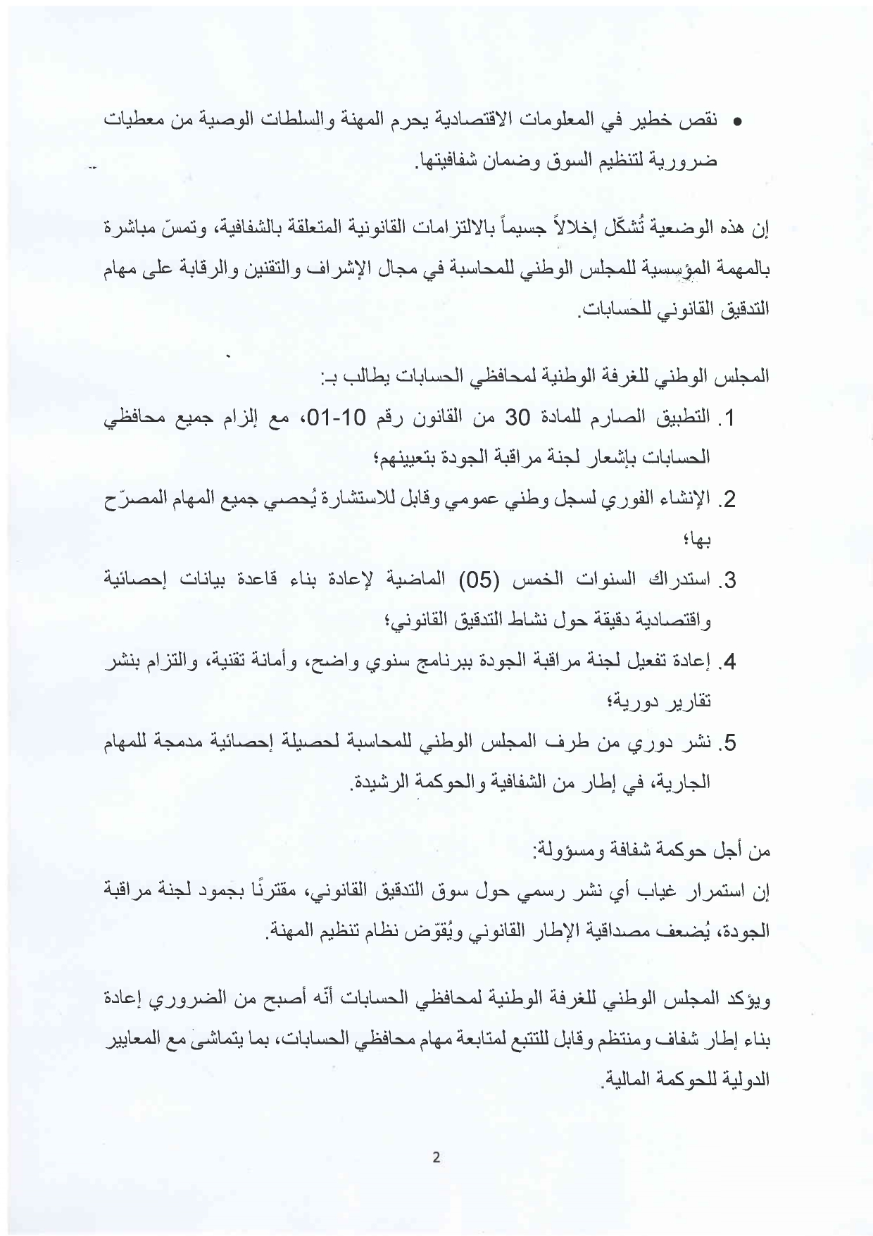 مشروع قانون .. المتعلق بتنظيم مهنة المحاسبين والمدققين.