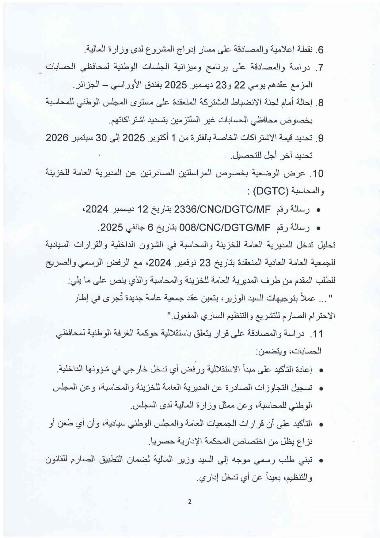 الخطاب الرسمي – الجمعية العامة العادية لمحافظي الحسابات. الجزائر، 30 أكتوبر 2025