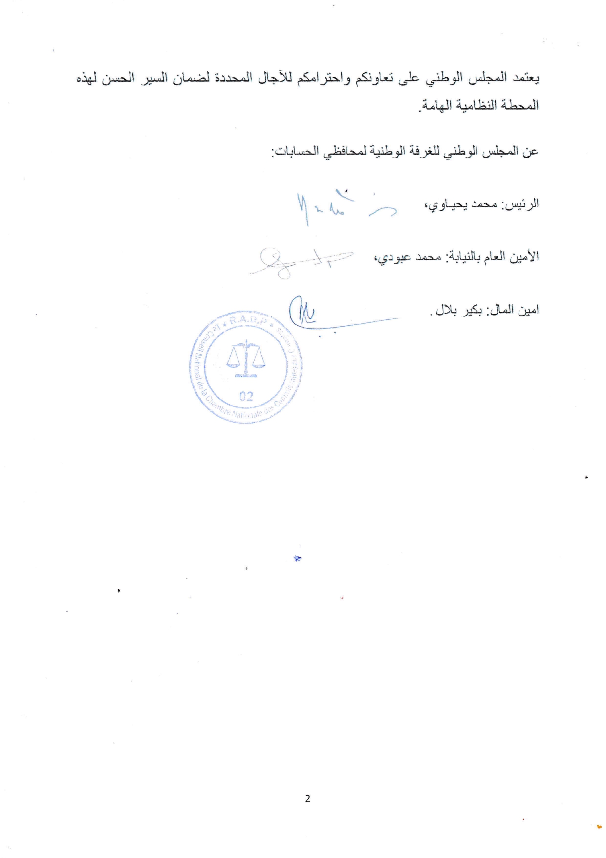اعلان موجه الى محافظي الحسابات حول آخر أجل لتسديد الاشتراكات