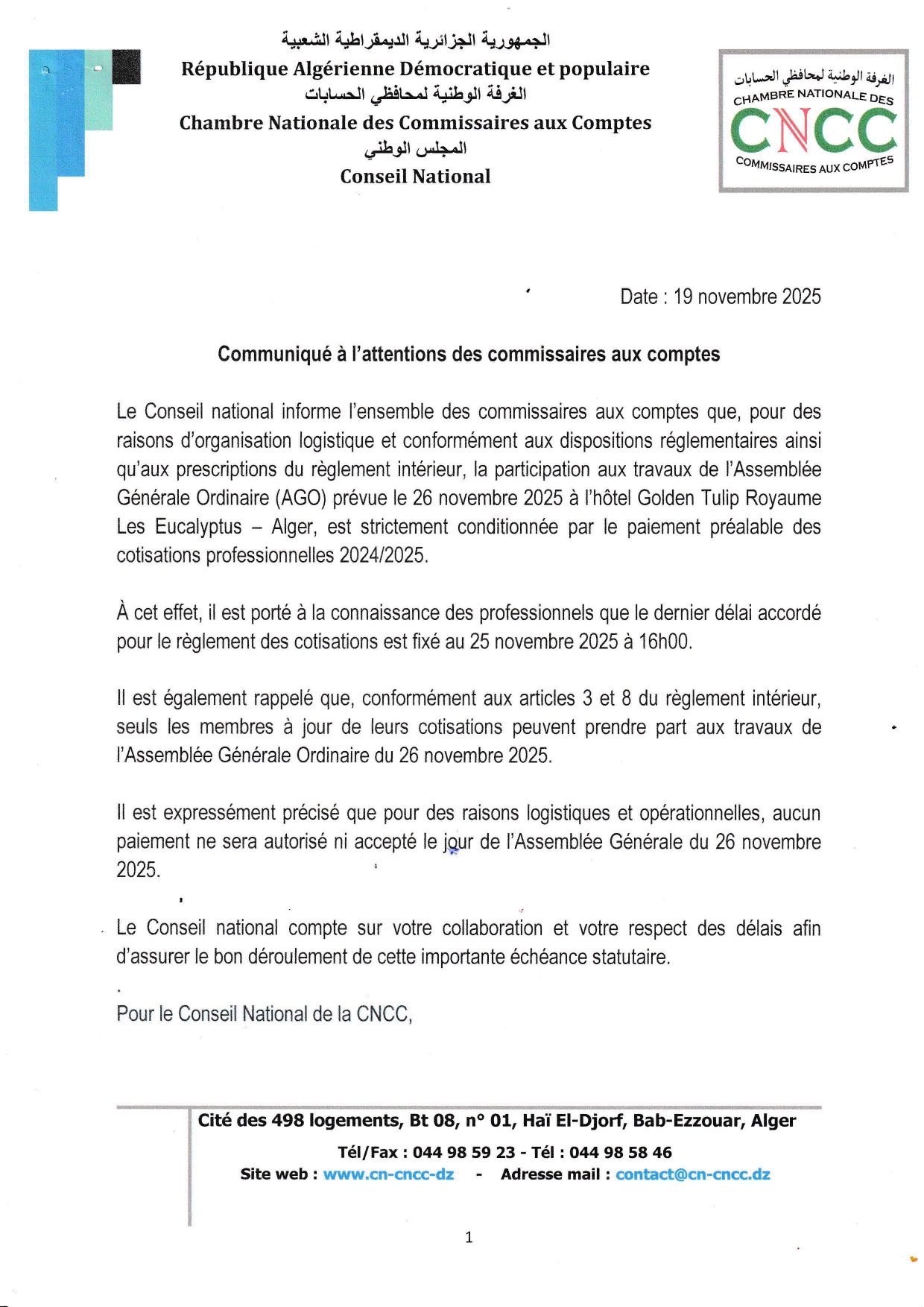 Communiqué à l’attention des Commissaires aux comptes concernant le dernier délai de règlement des cotisations