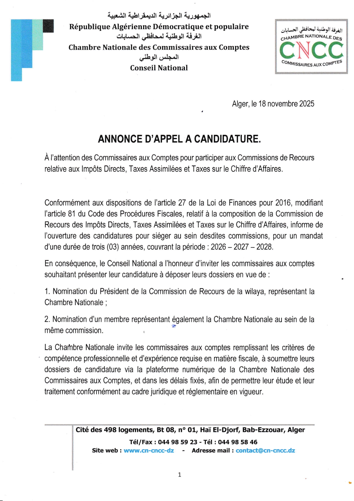À l'attention des Commissaires aux Comptes pour participer aux Commissions de Recours relative aux Impôts Directs, Taxes Assimilées et Taxes sur le Chiffre d'Affaires.