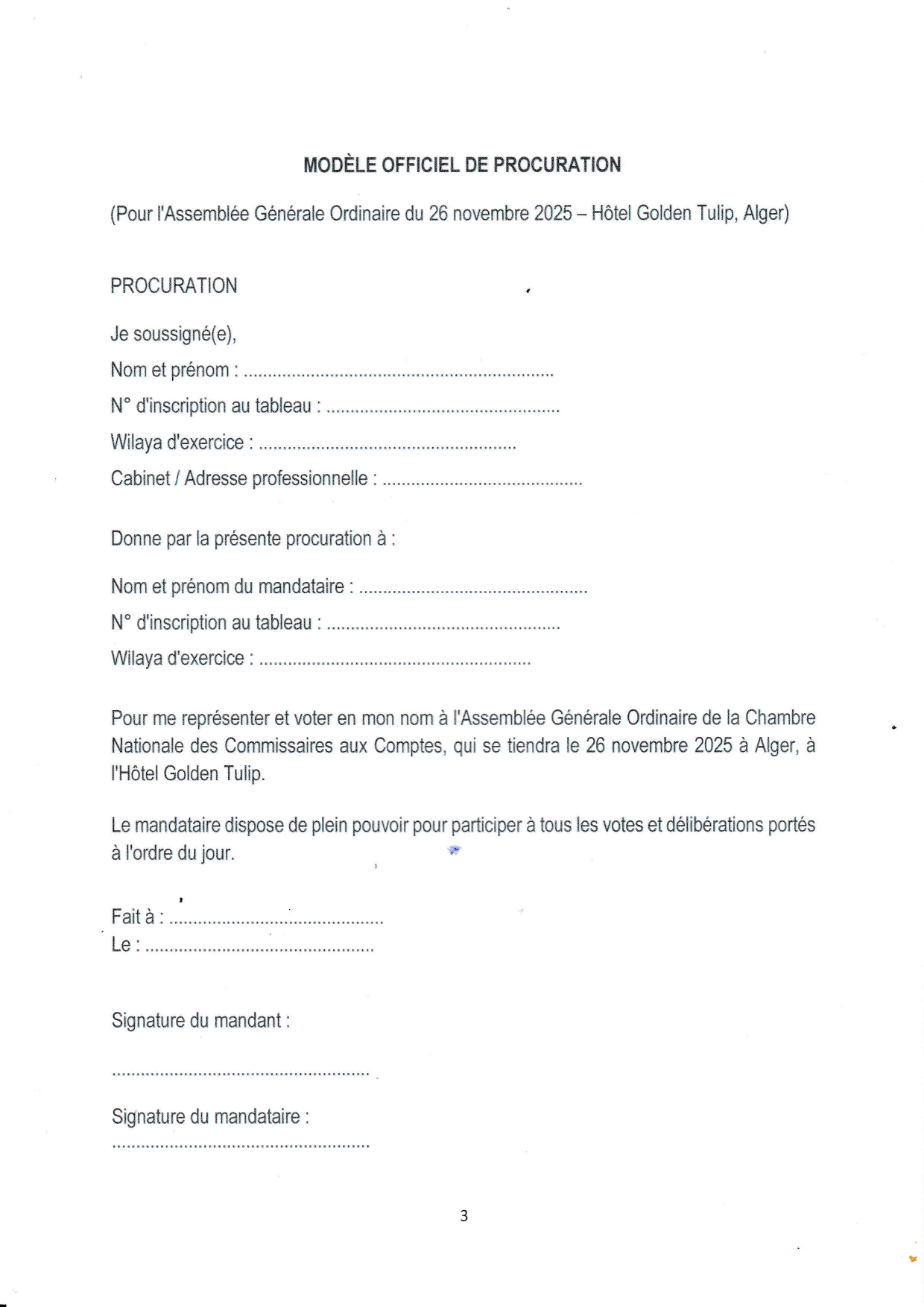 MODELE OFFICIEL DE PROCURATION