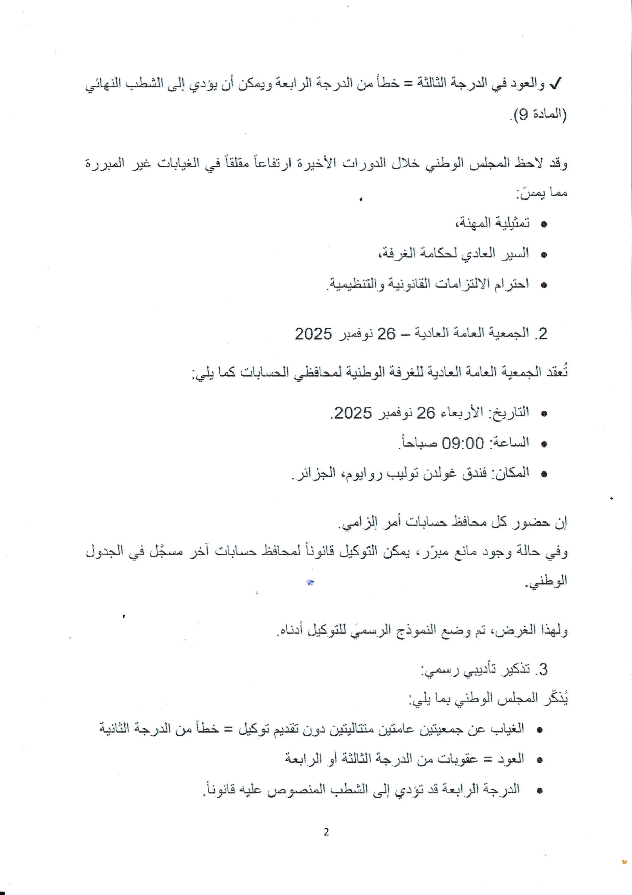 إلزامية حضور الجمعيات العامة – تذكير بالأحكام التأديبية