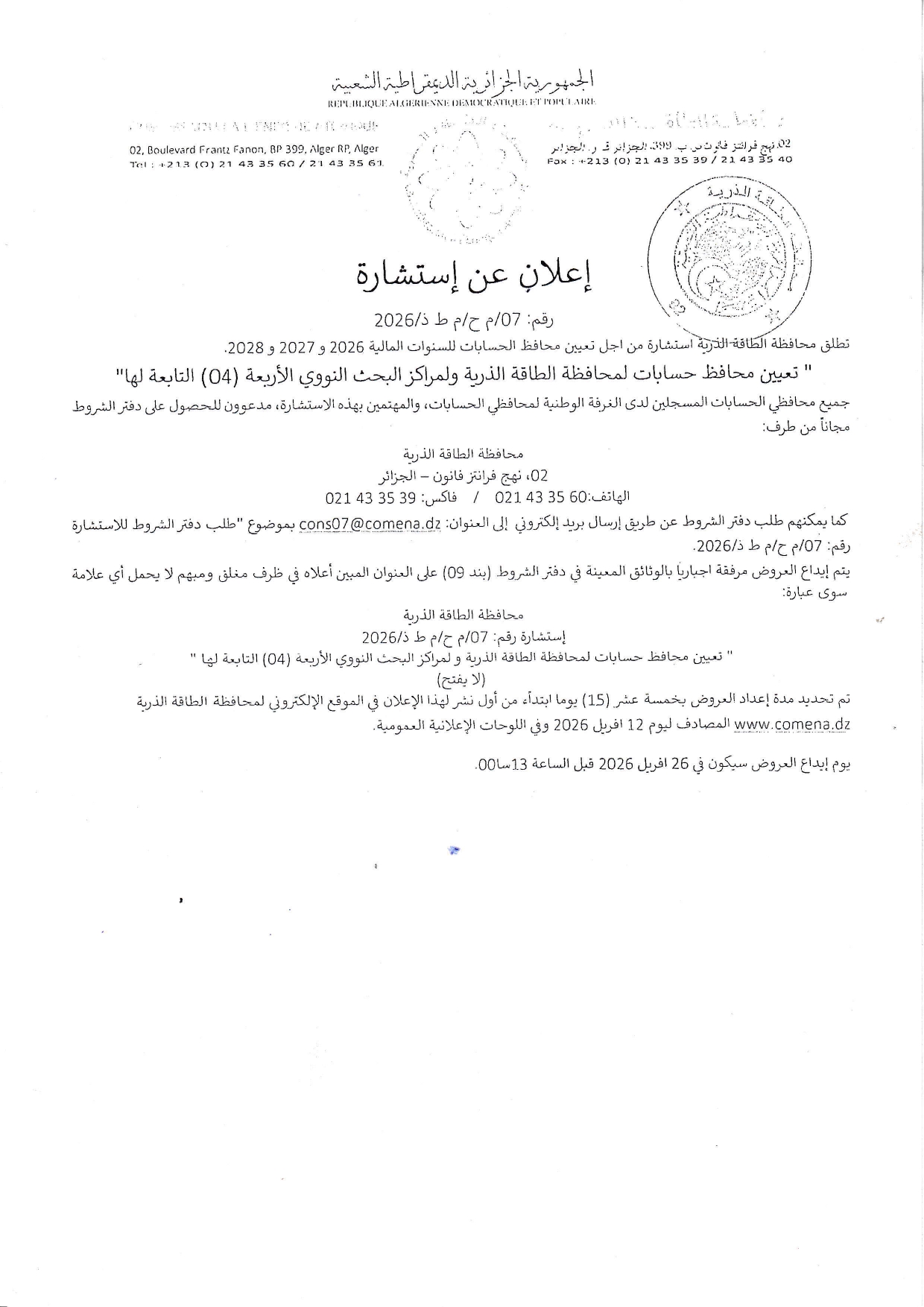 Avis de consultation: "Désignation d'un commissaire aux comptes pour le commissariat